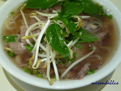 One of my comfort foods---Pho Chin-Nam, a brisket and flank noodle soup at Pho Hoa. Pho, by the way, is white rice noodles in clear beef broth with thin cuts of beef. Fresh basil and beansprouts were added over-the-top of this Pho to add flavor to the broth. I also squeezed a wedge of lemon into the soup and added bits of red chili peppers. I usually order this pho when I'm not really hungry but craving for something to revive my sagging spirit.